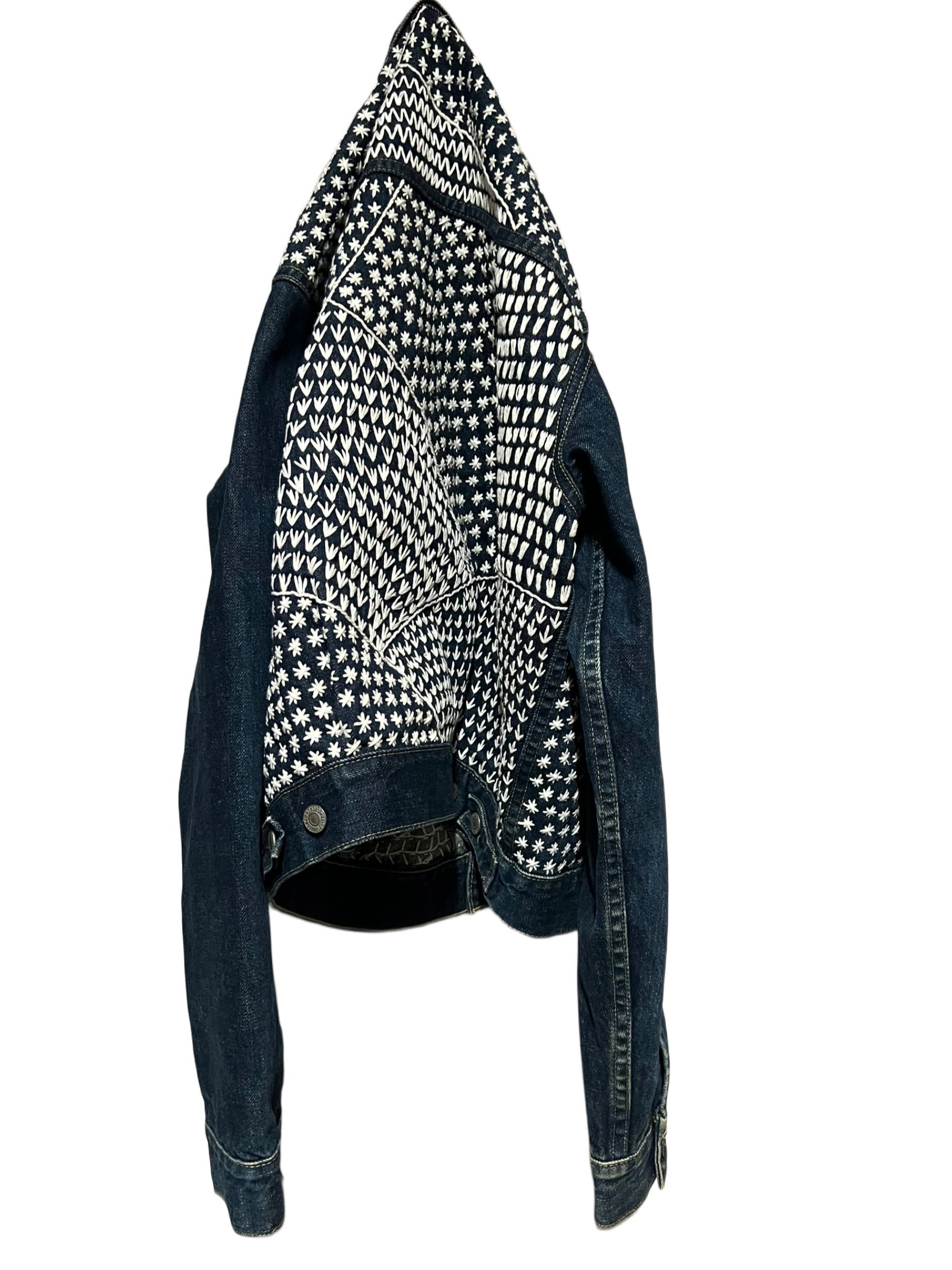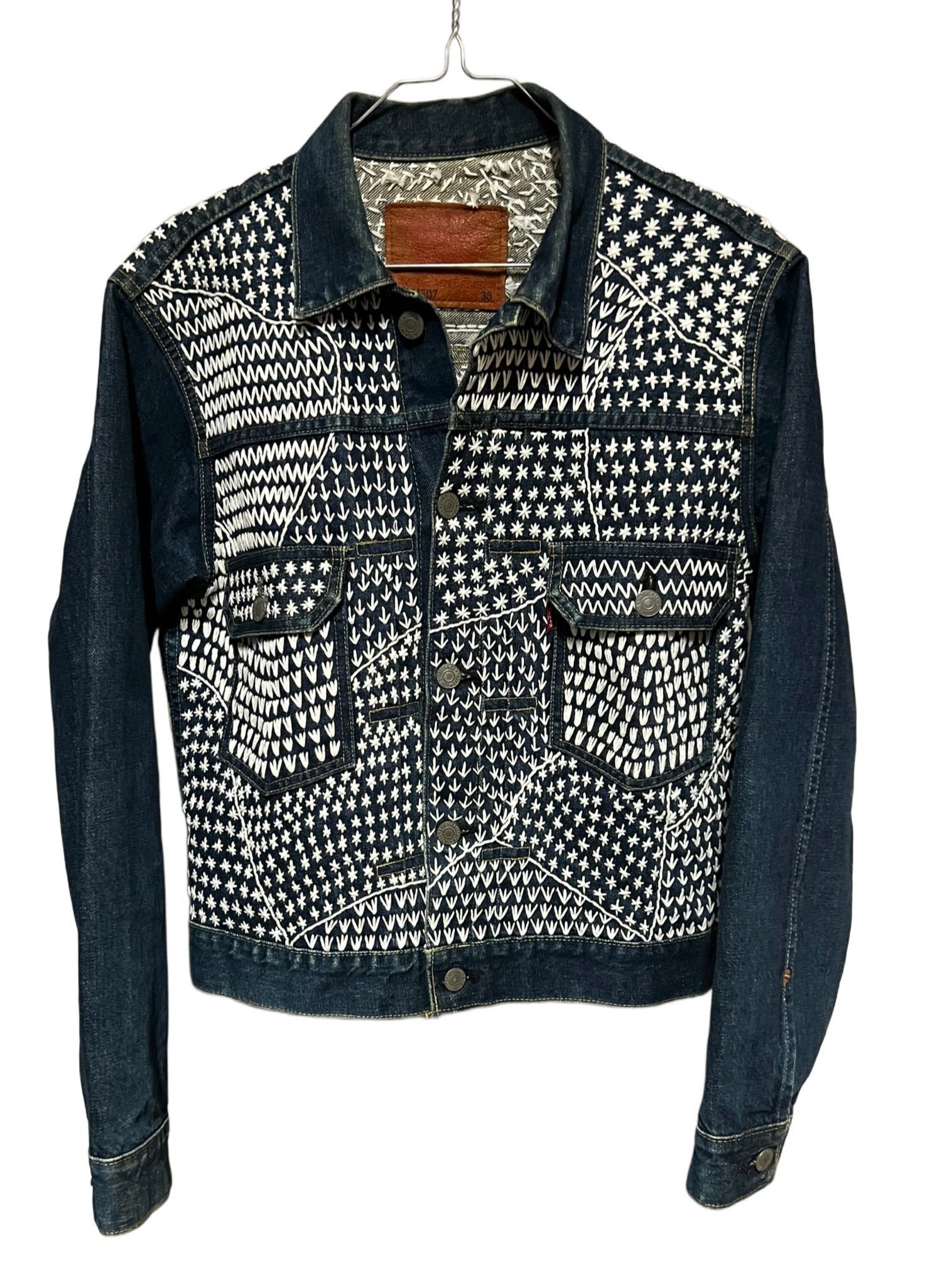 リーバイス(日本製)のデニムジャケットに刺繍を入れています。