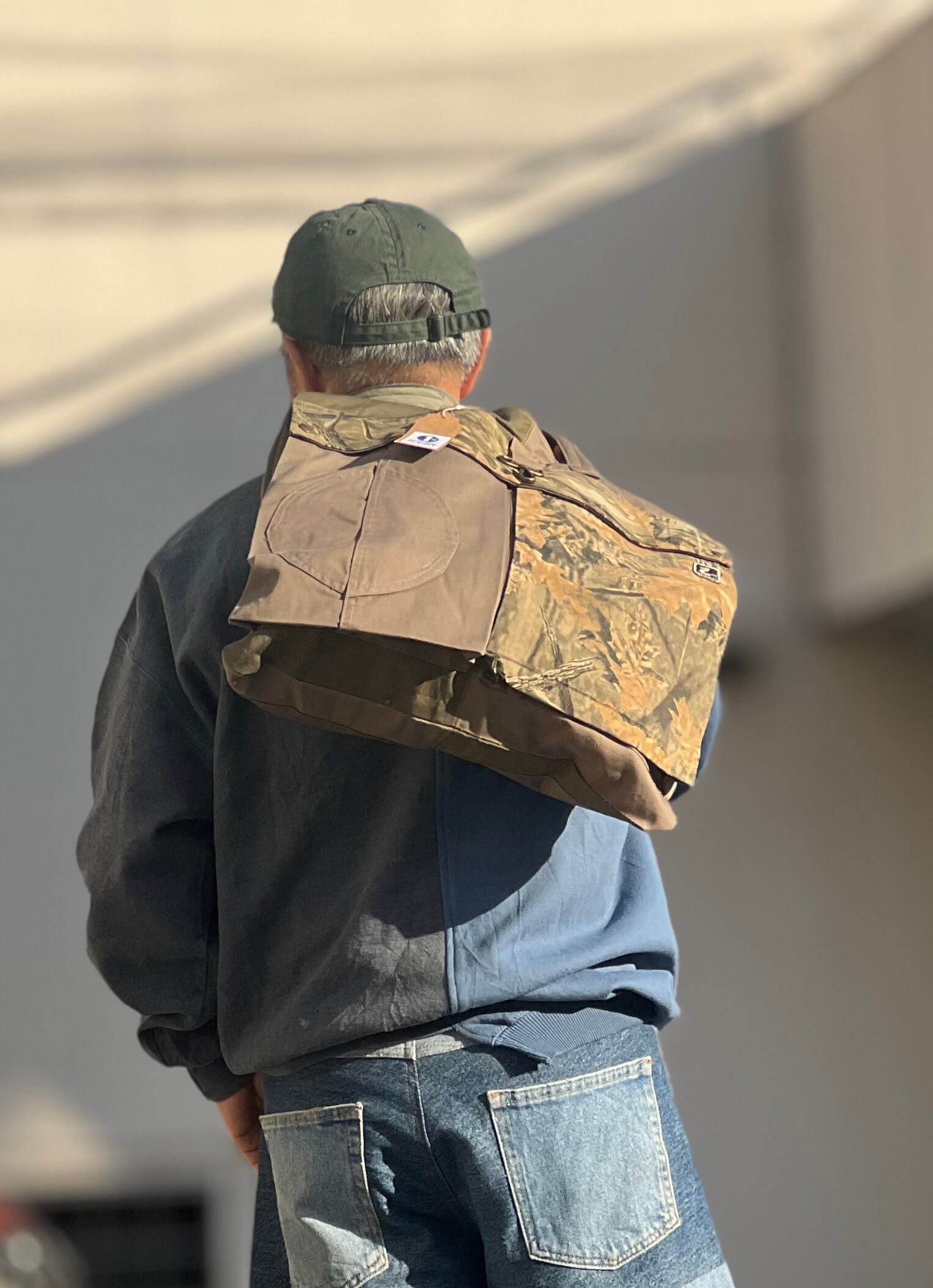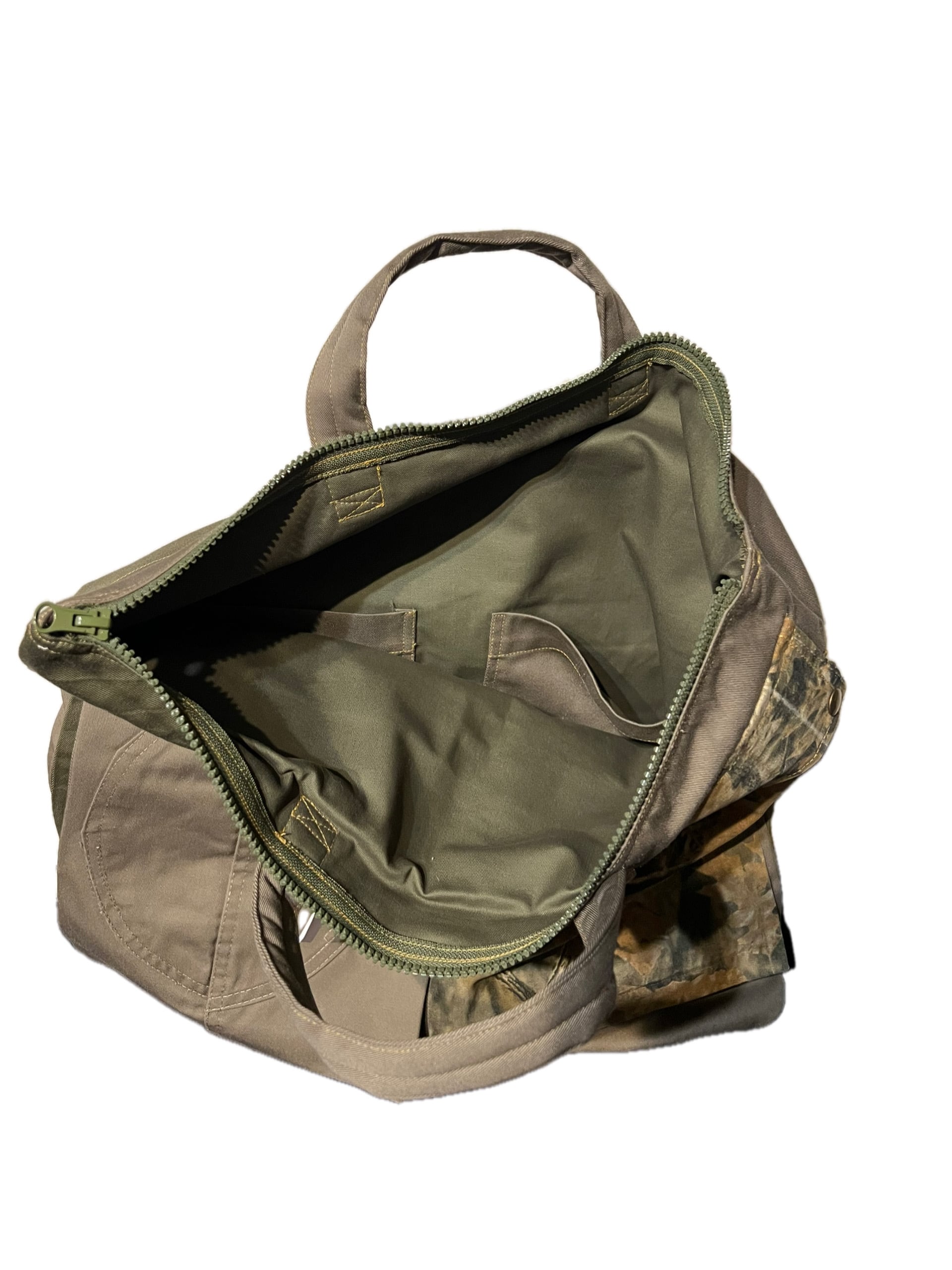 廃棄になるかもの商品や生地を使用してリメイクヘルメットバッグを作りました。