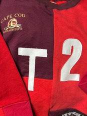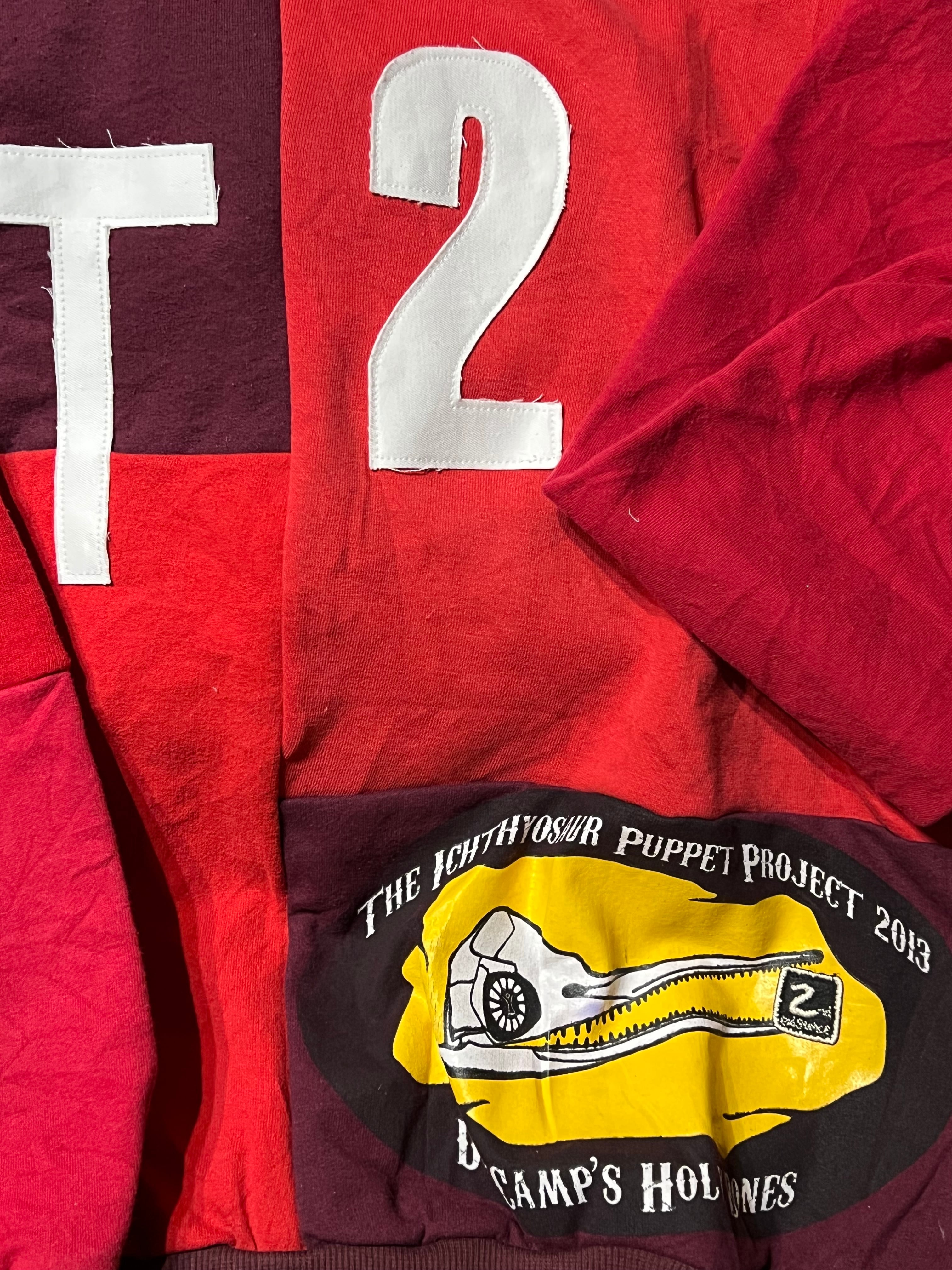 微妙に違う赤系のスウェット素材をブロッキング縫製した拘った逸品になります。