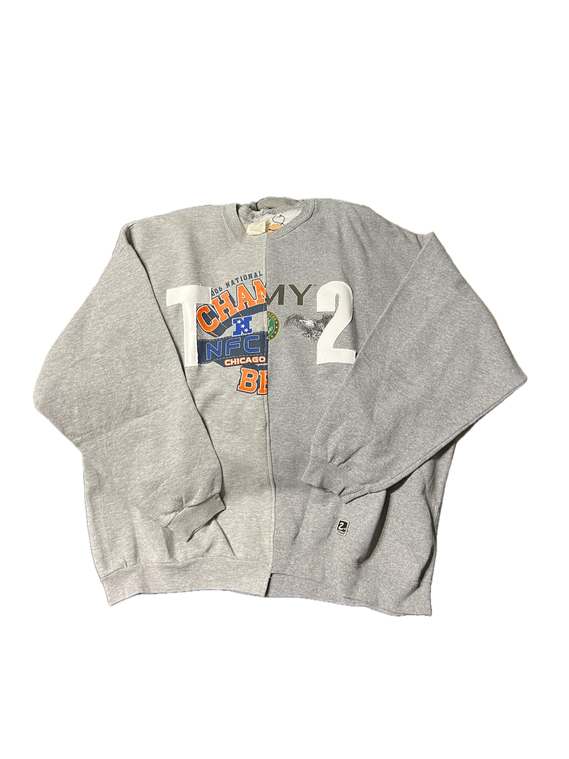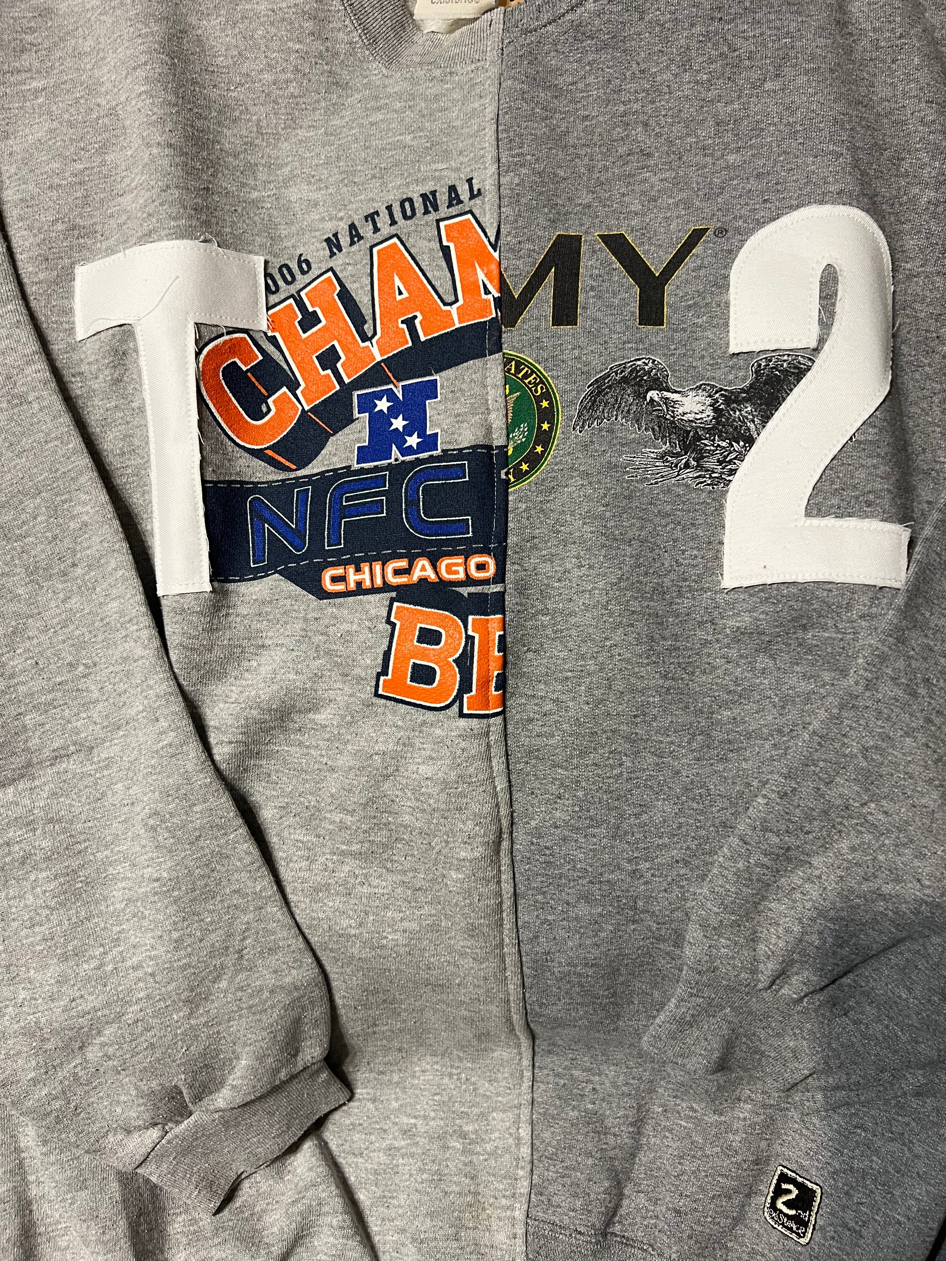 グレー系の2つのスウェットを繋ぎ合わせました。