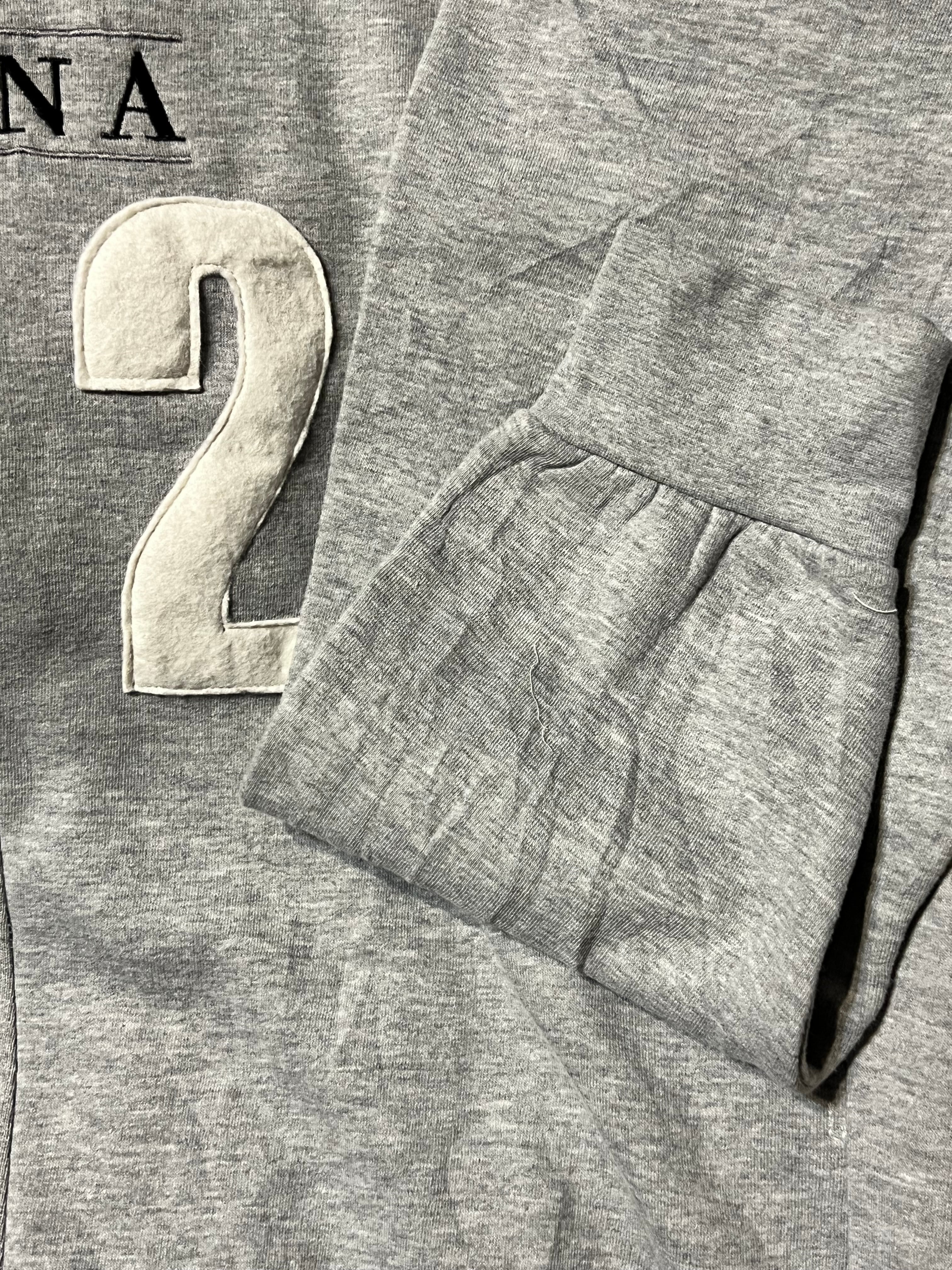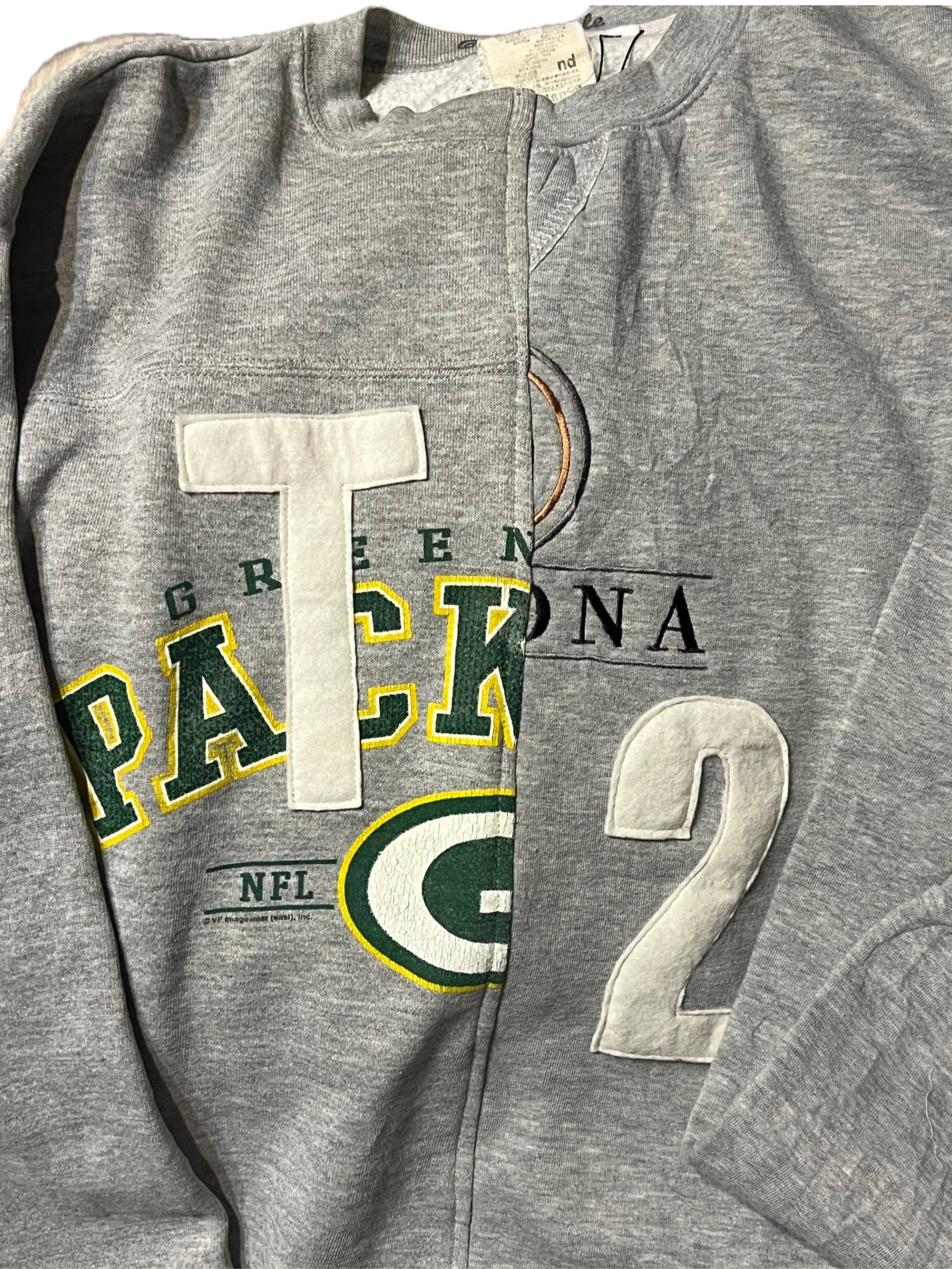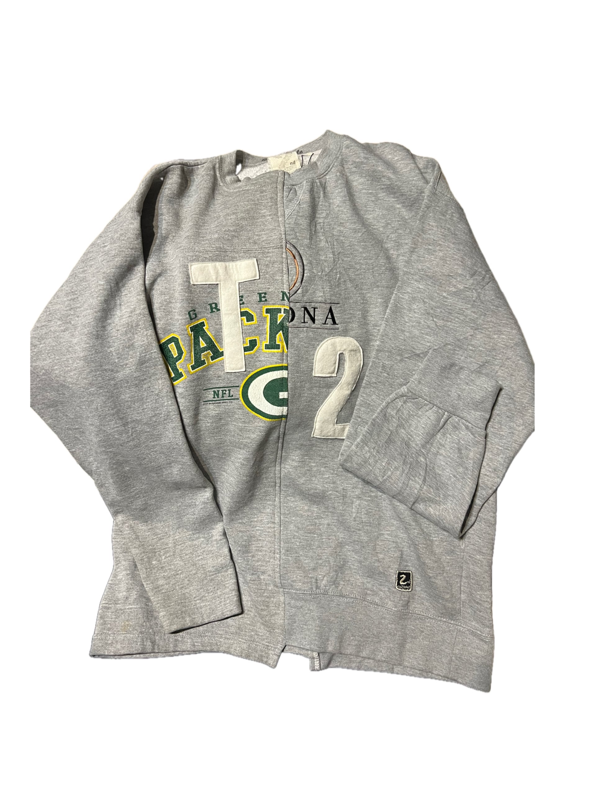 廃棄になるかものスウェットを再構築して新しく生まれ変わらせました。フロントのプリントが特徴的です。また袖口も左右違います。裾口もリブでは無く共生地になってます。まさに唯一無二の1点ものになってます。世界中であなただけの1着です!