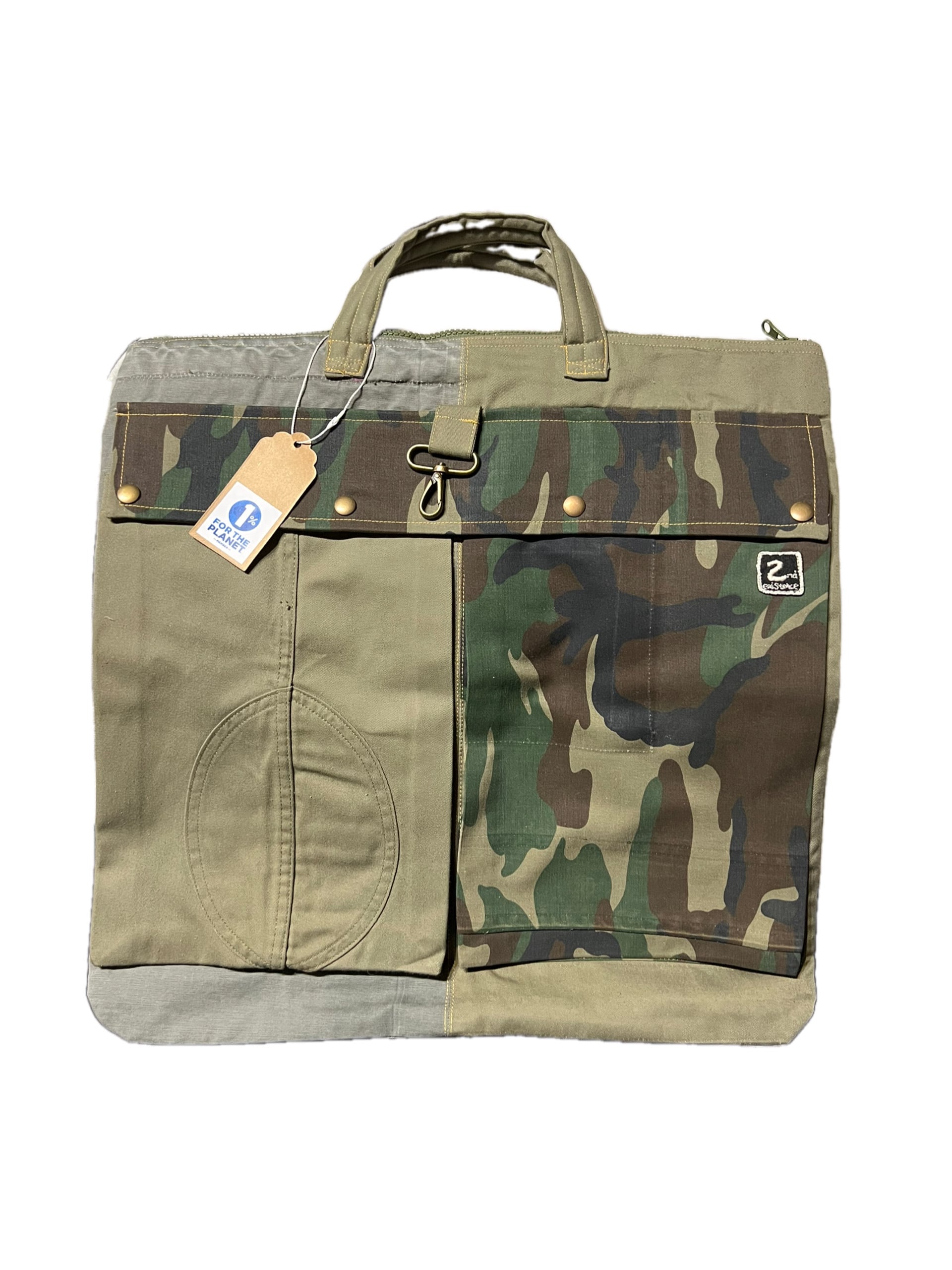 カーキ系とベージュ系に迷彩柄を混ぜることによるより個性的なバッグになっています!