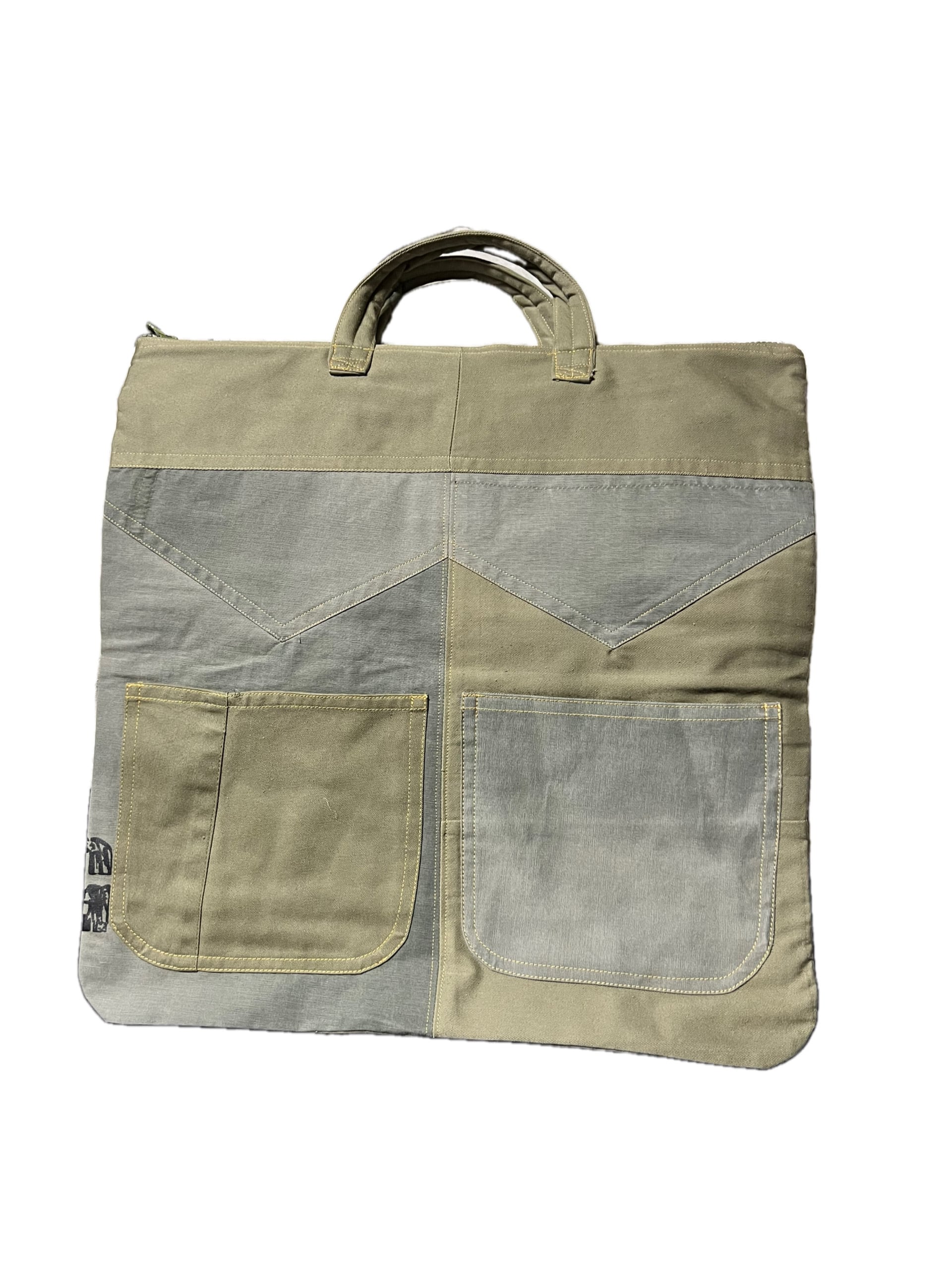 廃棄になるかものパンツや生地を再構築して新しくヘルメットバッグに生まれ変わらせました。