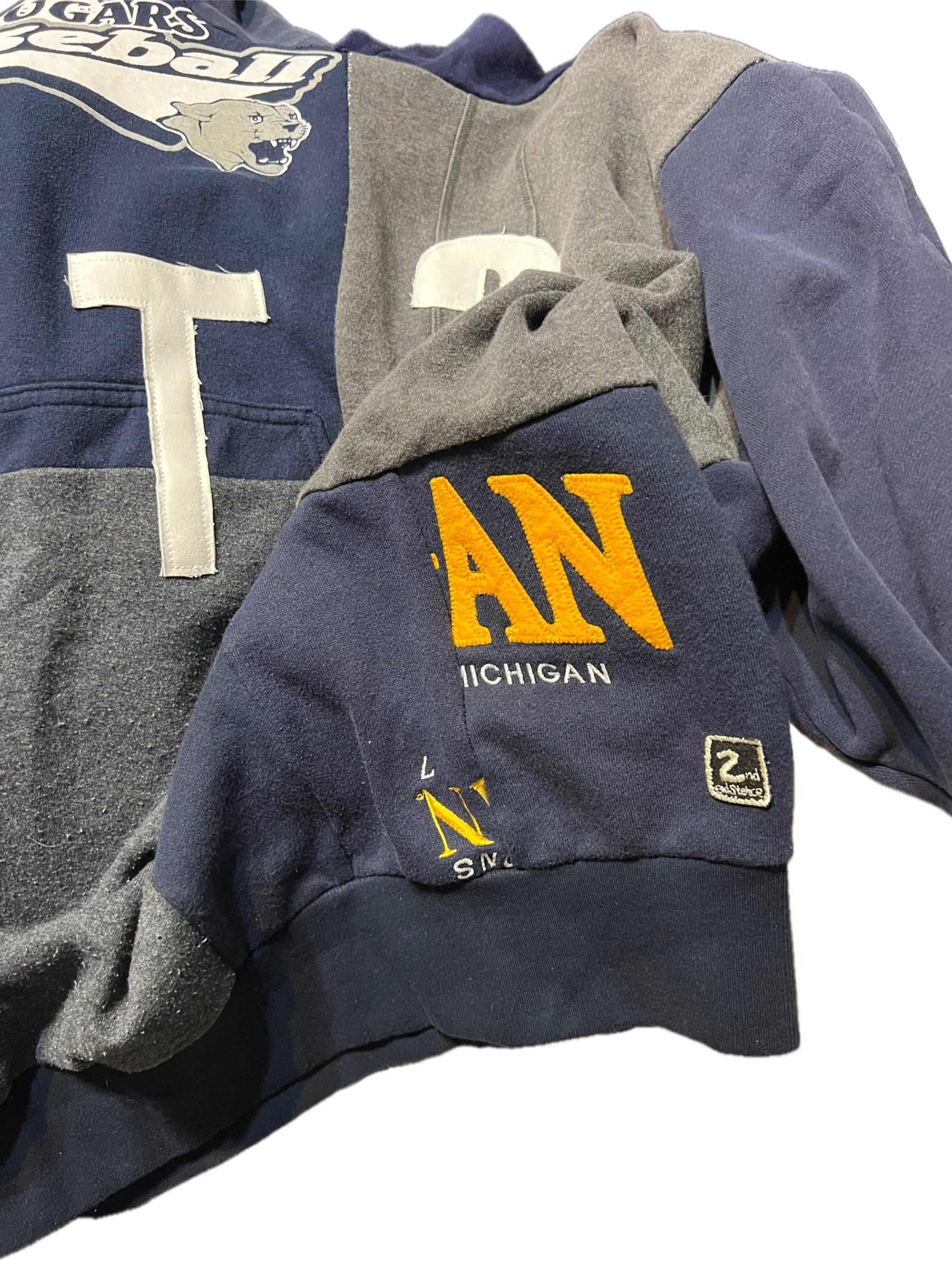 唯一無二の1点ものなので世界中でここでしか手に入りません。ネイビーとグレー系の組み合わせが最高にいい感じです。
