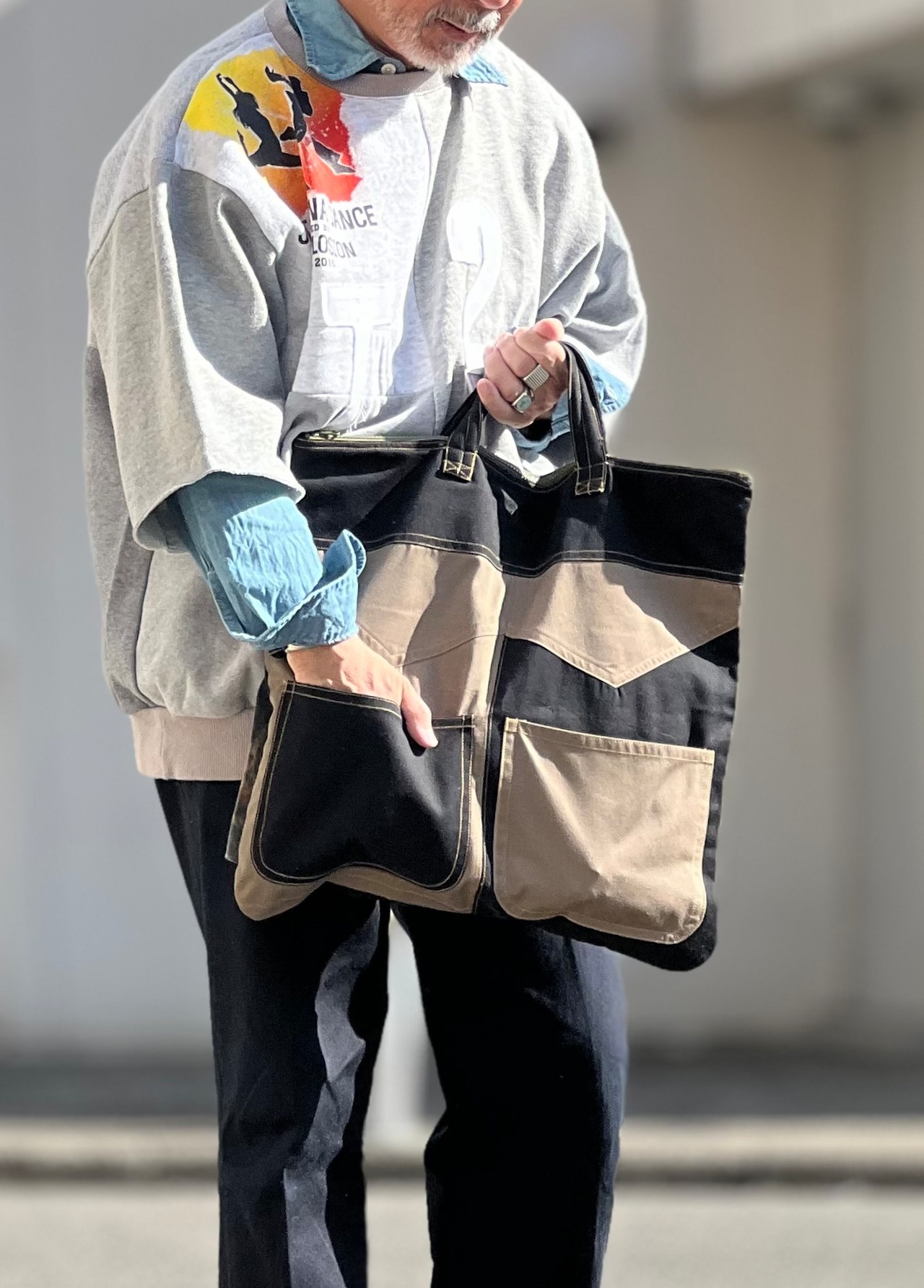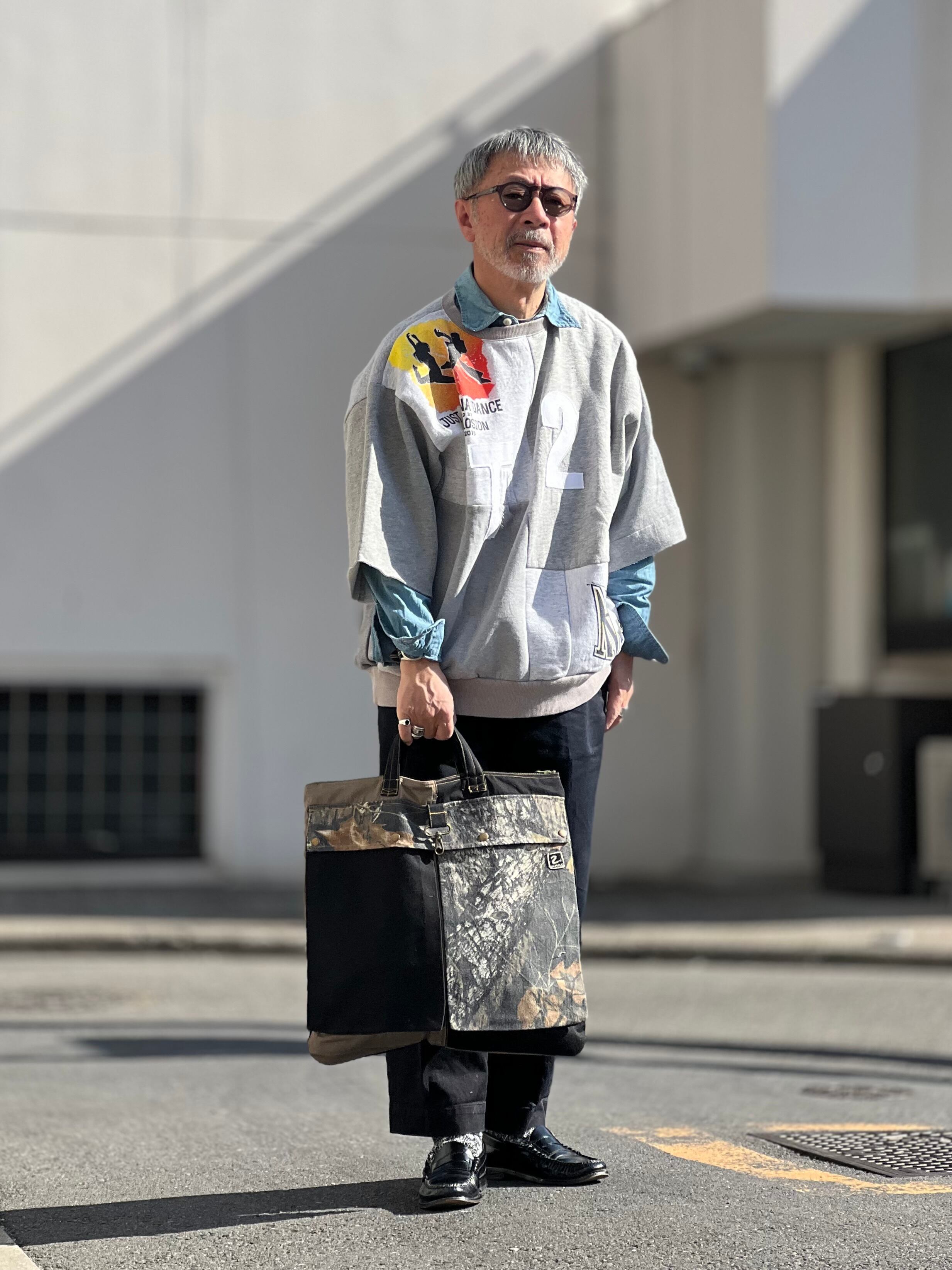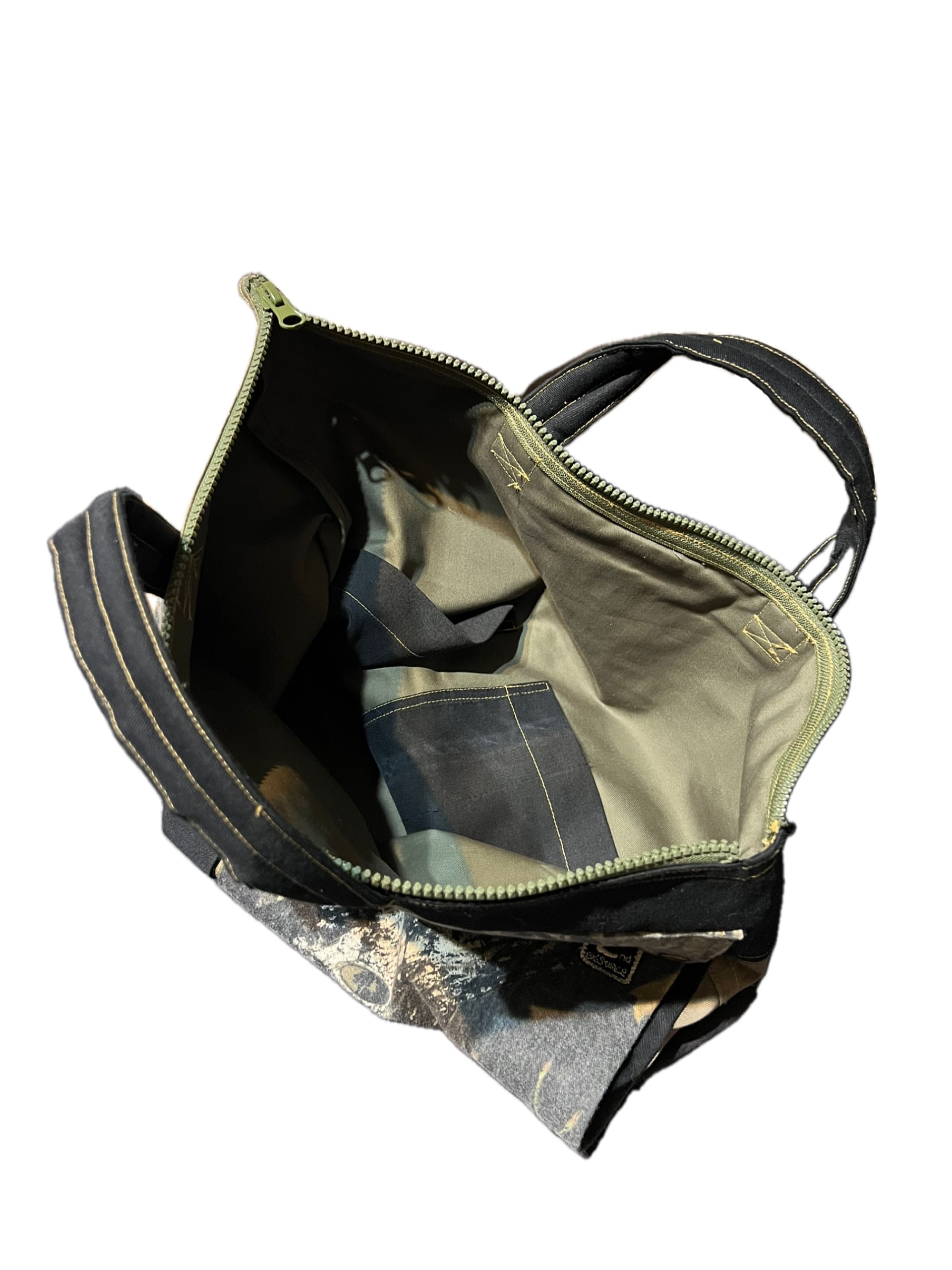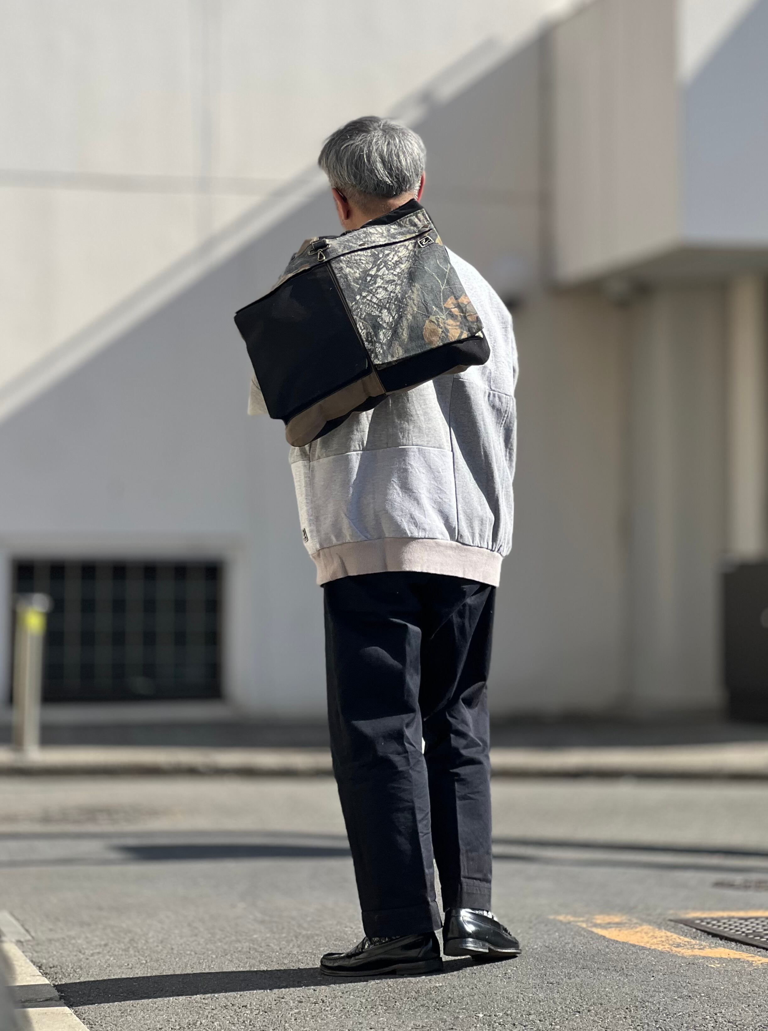 廃棄になるかものパンツや生地を再構築して新しくヘルメットバッグに生まれ変わらせました。