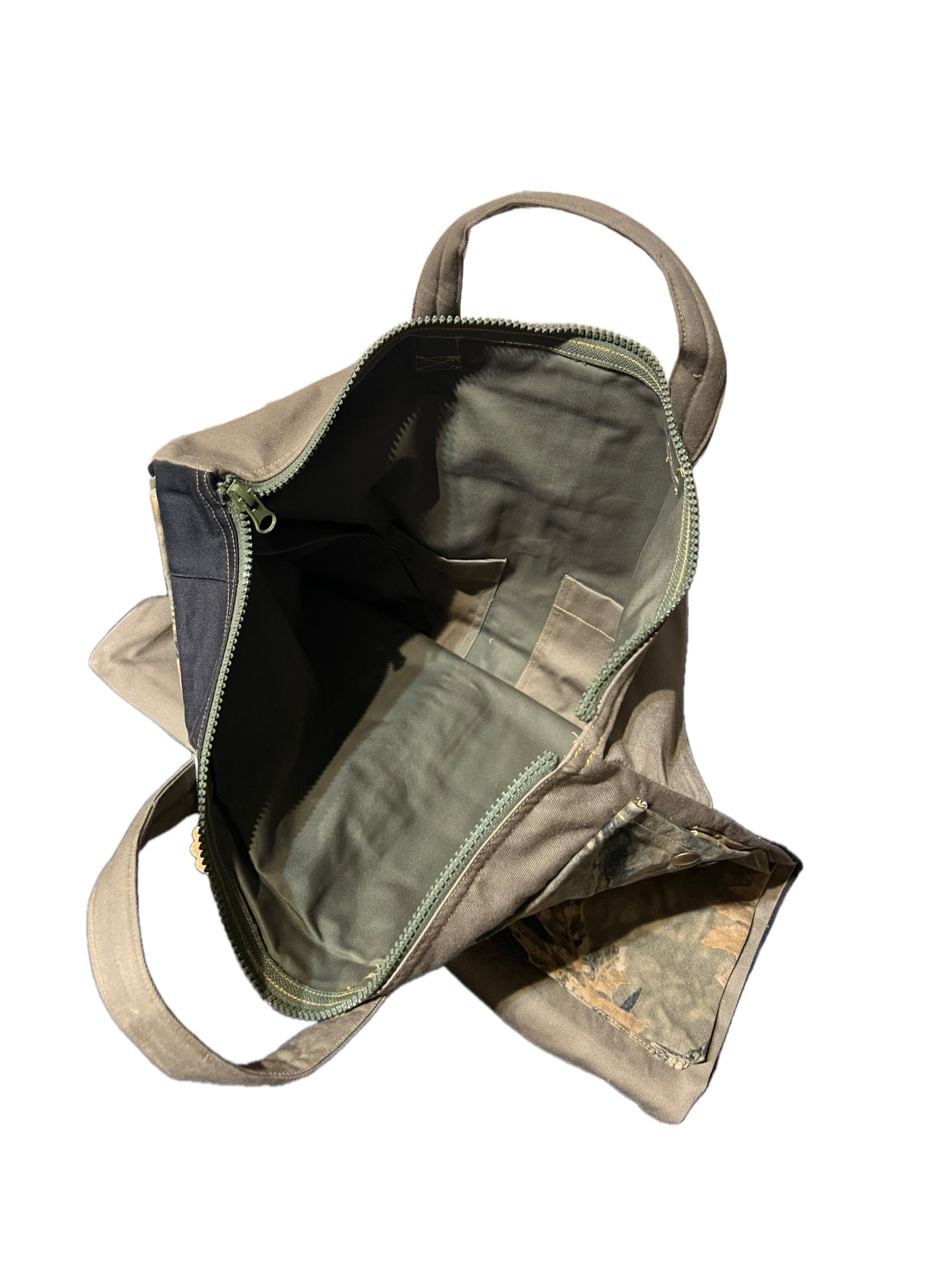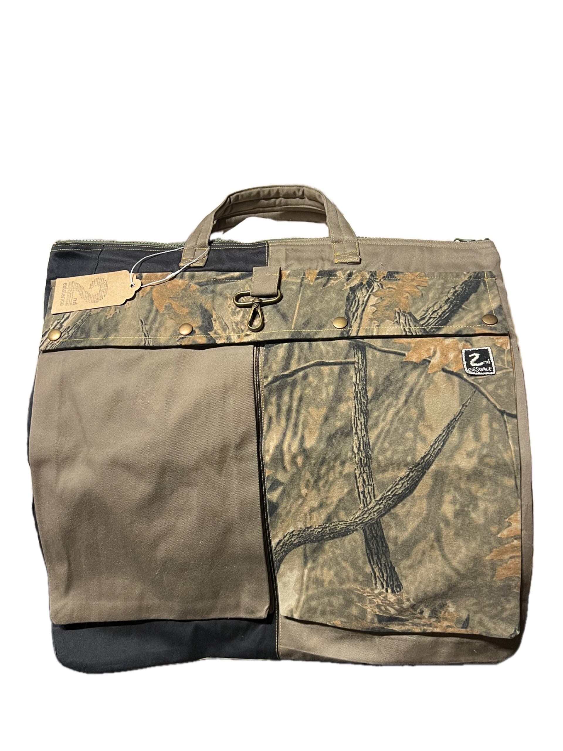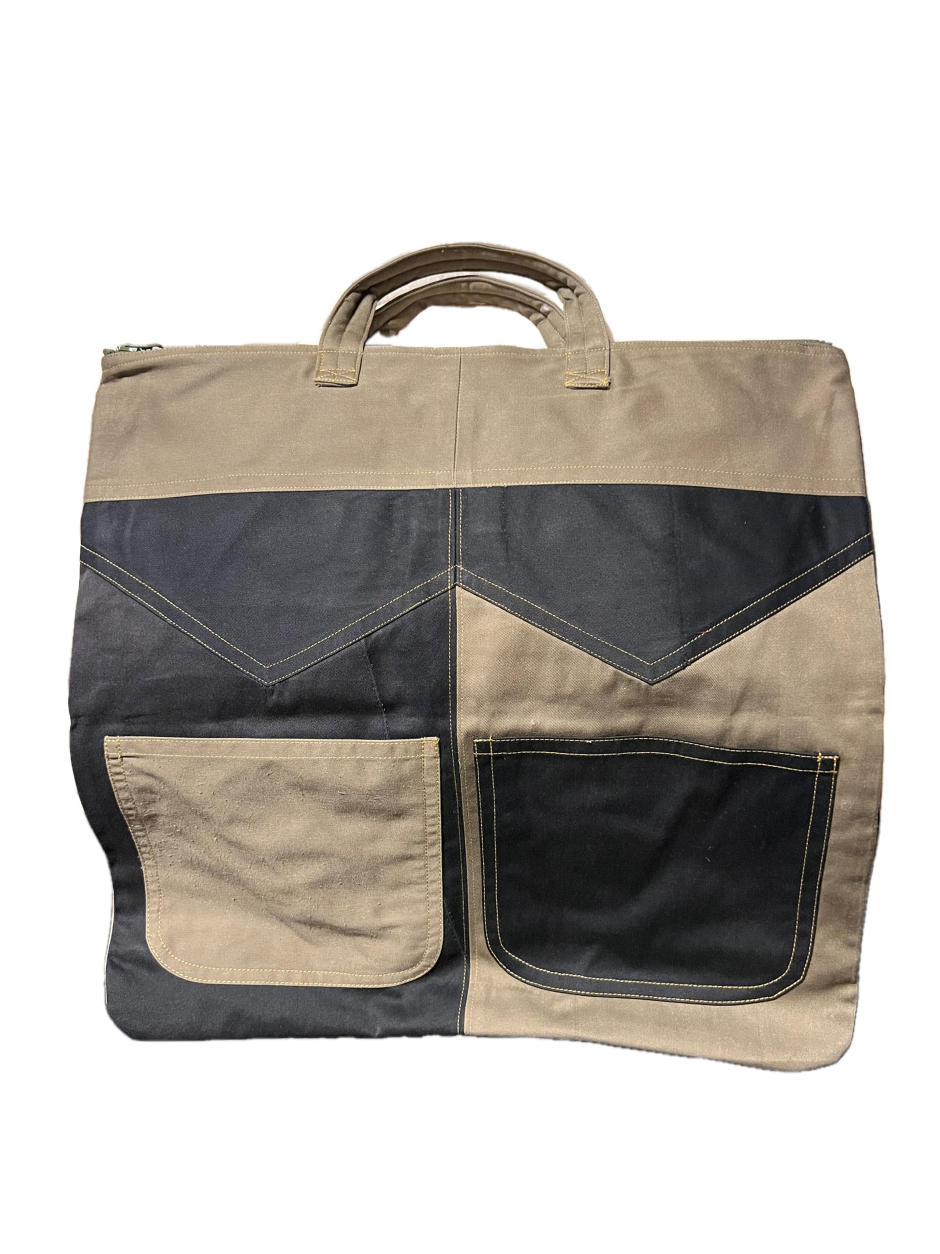 廃棄になるかものパンツや生地を再構築して新しくリメイクヘルメットバッグにしました。