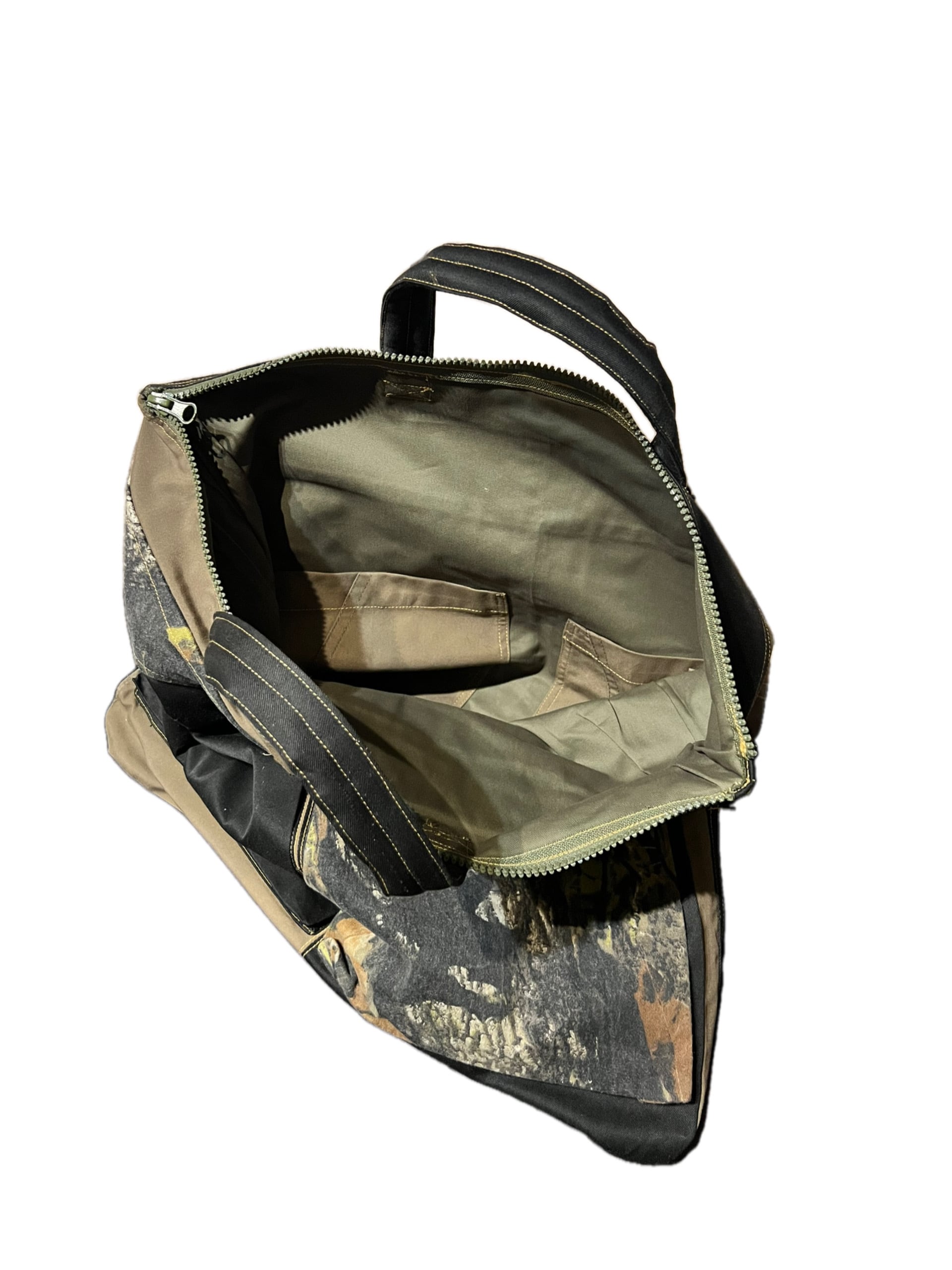 廃棄になるかものパンツや生地を再構築して新しくリメイクヘルメットバッグにしました。